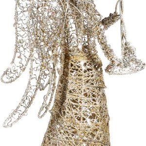 Goodsright Decor Angel Christmas Tree Topper Gold Glitter Christmas Treetop Decoration Coated Metal Angel Xmas Tree Topper Ornaments for Holiday Home Office Shopping Mall Decor